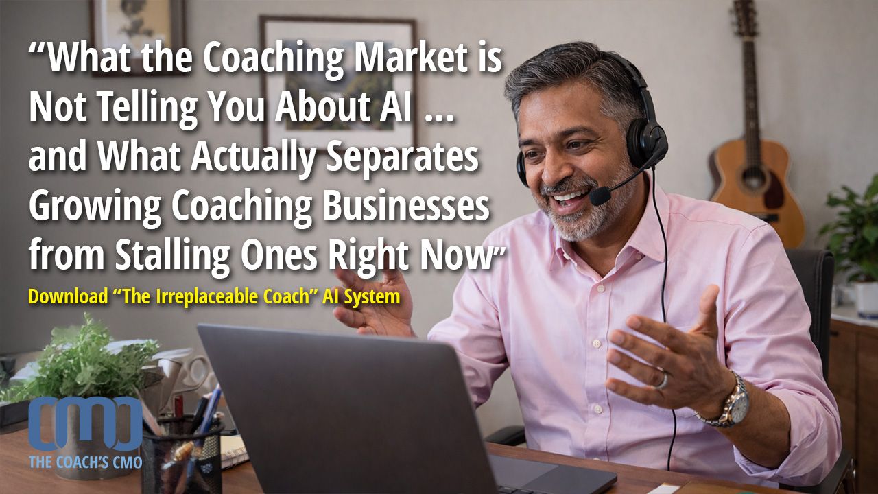 (Note: Scroll below to download the “The Irreplaceable Coach” the FREE strategic guide that gives executive, leadership, business, health, career, and sales coaches the four-stage AI system… plus 19 specific tool recommendations… to stand out, attract better clients, and build a coaching business no competitor can easily copy.)